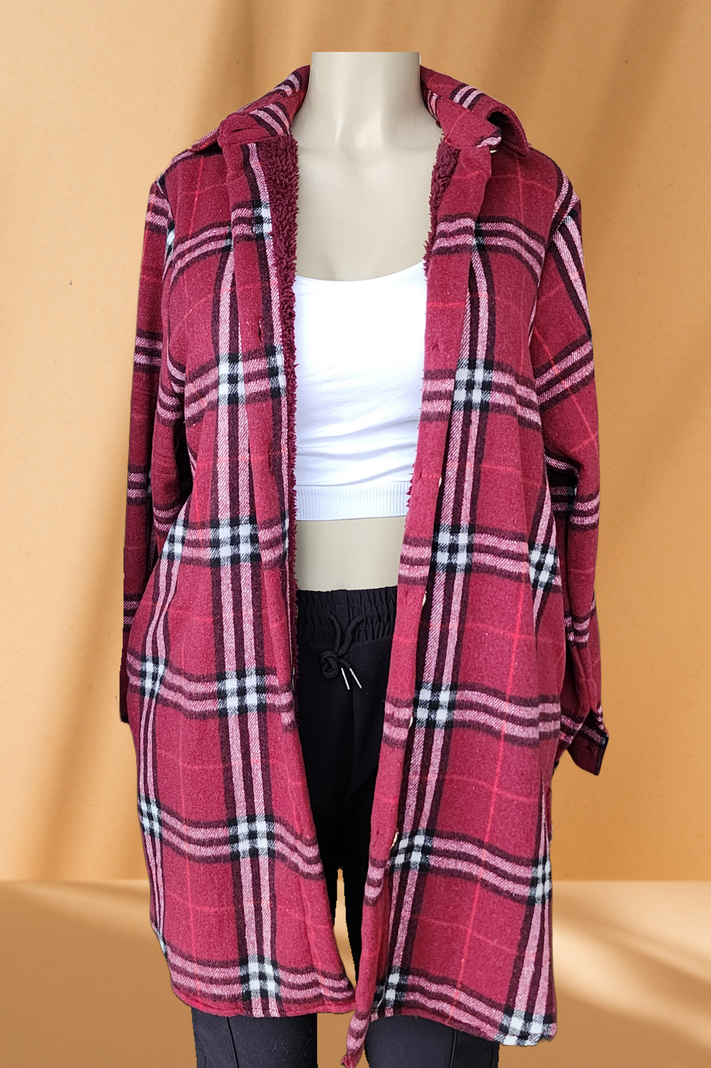 Women's Long Flannel Jacket with Fleece